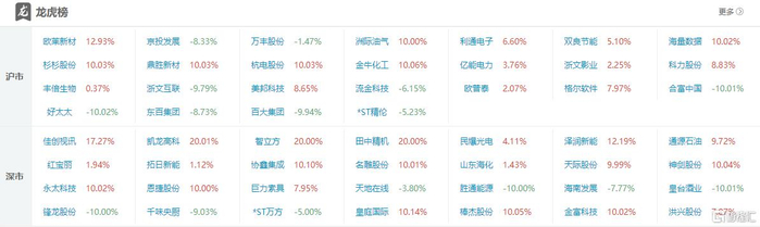 高位股方面,AI应用概念股名雕股份7天6板,影视股横店影视8天6板,化工股百川股份9天6板,并购重组的韩建河山5连板、凯龙高科20CM4连板。