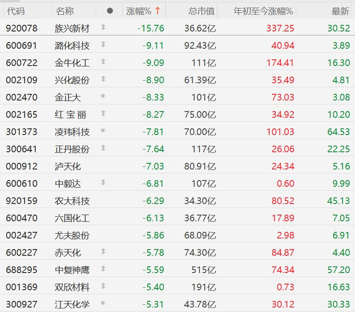 A股化工股集体下挫,金牛化工跌超9%