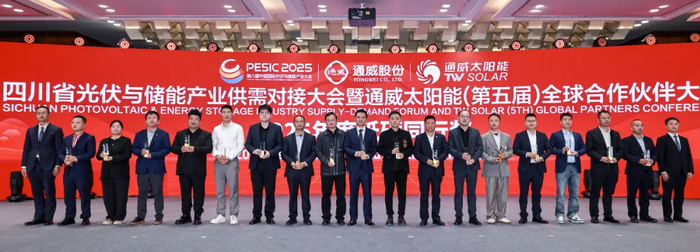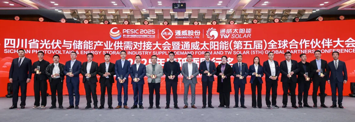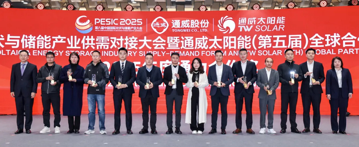 砥砺奋进十二载,通威太阳能的每一份成就与突破,都离不开全球合作伙伴的鼎力支持与并肩前行。一直以来,通威始终与全球合作伙伴秉持互利共赢理念,深化产业链协同,共同推动光伏产业持续健康发展。为表彰一路同行的优秀伙伴,大会特别颁发了砥砺同行奖、通力合作奖及同舟共济奖。