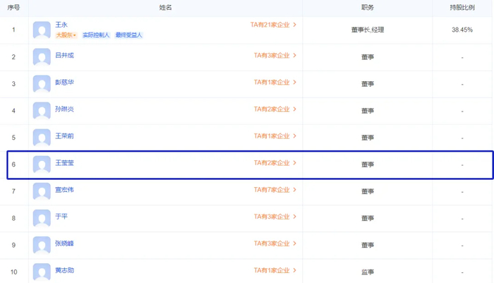 2023年,巴义敏辞去了董事、总经理职务,王永董事长、总经理“一肩挑”,腾出的一个董事席位由王永之女王莹莹担任。