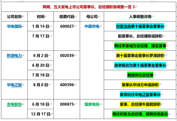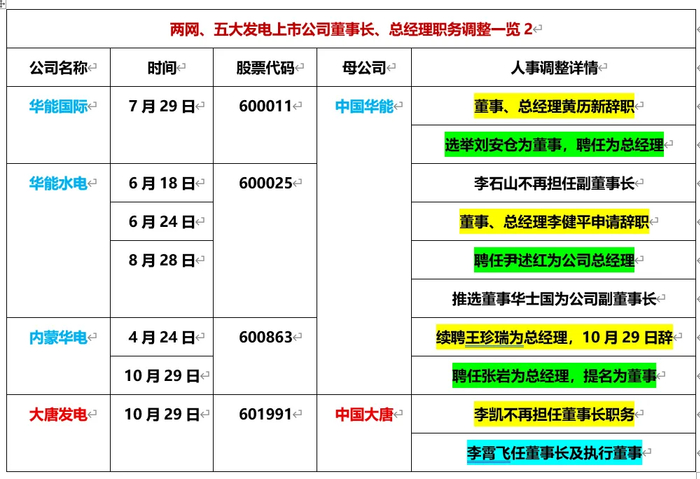 (三)中国华能:3家上市公司“二把手”调整(24人次)