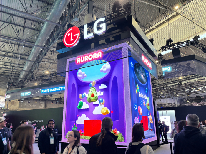 LG在本届展会上重点展示了其Micro LED产品线,并在展位入口处设置了三座视觉装置——每座尺寸为4.2米×5.6米的LED塔。该塔体由52.5米长的透明网状LED构成,具备动态升降功能。