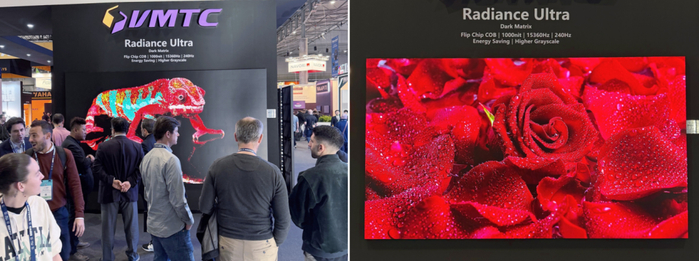 在小间距显示领域,美亚迪同时展出了SMD、GOB、MIP与COB四种工艺的产品。其中,MIP和COB在亮度、对比度、刷新率及能效方面具备提升,色彩与细节表现也有所增强。