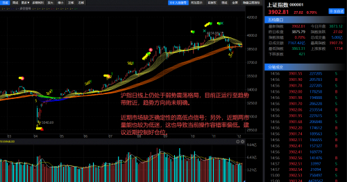 沪指在周五出现 90 分钟级别小低点后启动反弹,但整体日线上仍处于弱势震荡格局,目前正运行至趋势带附近,趋势方向尚未明确。正如之前所说,近期市场缺乏确定性的高低点信号,无论是判断反弹高点还是调整低点都难度较大;另外,近期两市量能也较为低迷,这也导致当前操作容错率偏低。建议还是要控制仓位,尽量多看少动、耐心观望。市场不会一直维持这种震荡胶着的状态,时间会逐步消化不确定性,后续终将出现清晰的趋势方向,耐心等待。