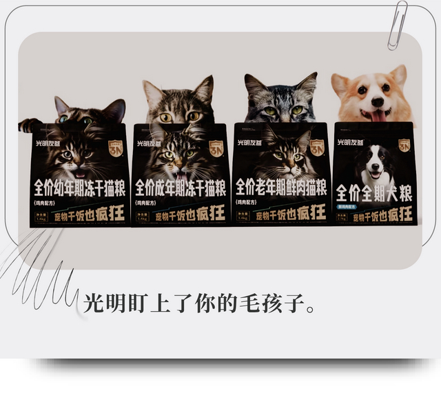 光明旗下的牛奶虽然业绩不佳,但在国内消费者心中还是有着 “安全、高品质” 的品牌认知,这种长期积累的口碑可迁移至宠物食品领域,能够吸引注重宠物食品安全的养宠人群,提供品牌背书、降低信任成本,帮助新品快速打开市场认知度。