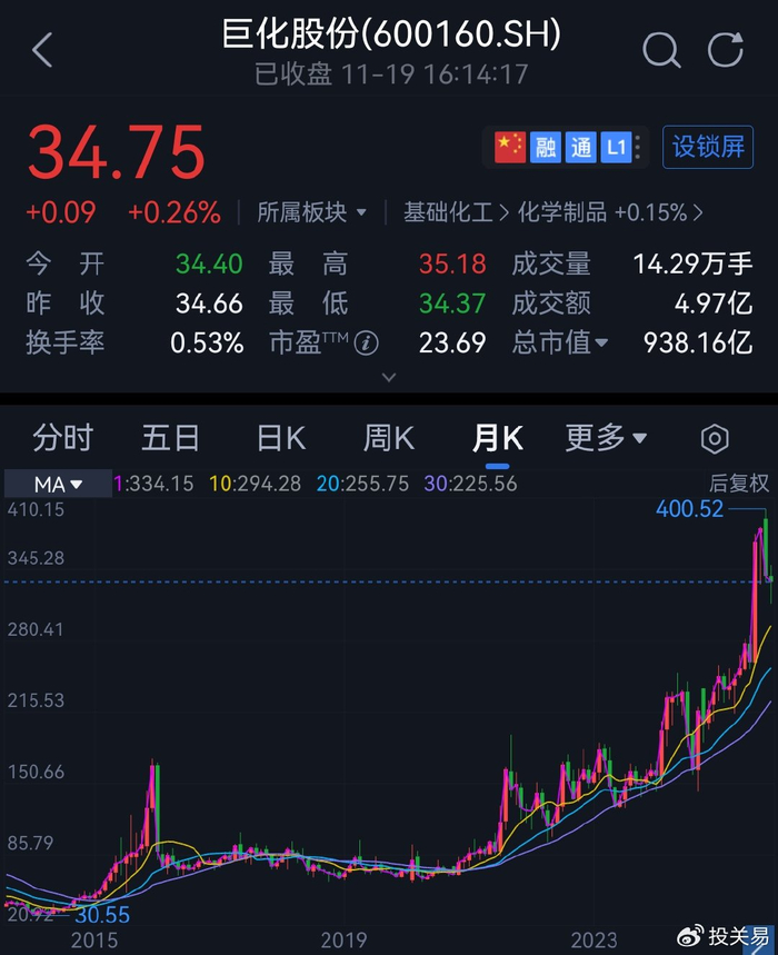 截至2025年11月19日,衢州共22家上市公司,总市值2645亿元,今年前三季度实现归母净利润合计约64亿元,巨化股份市值占比高达35%,归母净利润占比更是高达50%。巨化股份在衢州的重要性可见一斑。