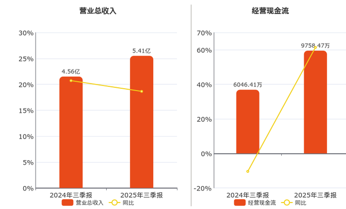 公司营业总收入为5.41亿元。归母净利润为7895.28万元。经营活动现金净流入为9758.47万元。