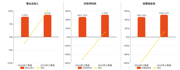 公司营业总收入为5.11亿元。归母净利润为1.10亿元。经营活动现金净流入为8299.14万元。