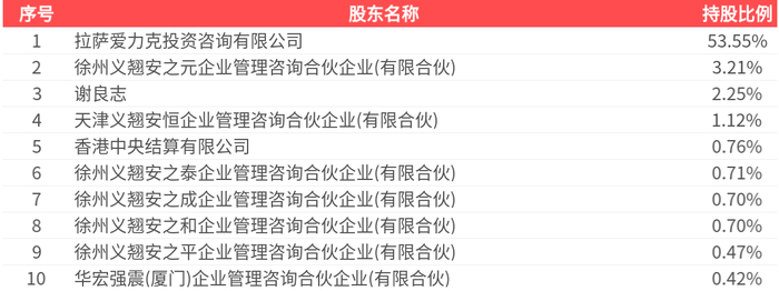 公司股东户数为2.26万户,前十大股东持股数量为7771.42万股,占总股本比例为63.89%,前十大股东持股情况如下: