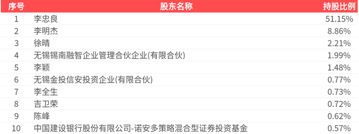前十大股东持股数量为6910.19万股,占总股本比例为69.10%,前十大股东持股情况如下: