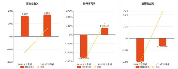公司营业总收入为3.18亿元,在已披露的同业公司中排名第78。归母净利润为1463.65万元。经营活动现金净流入为-3763.63万元。
