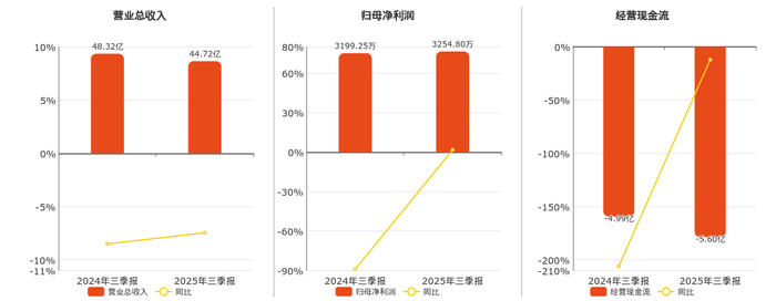 公司营业总收入为44.72亿元,较去年同报告期营业总收入减少3.60亿元,同比较去年同期下降7.45%。归母净利润为3254.80万元,在已披露的同业公司中排名第44。经营活动现金净流入为-5.60亿元,在已披露的同业公司中排名第75,较去年同报告期经营活动现金净流入减少6057.47万元。
