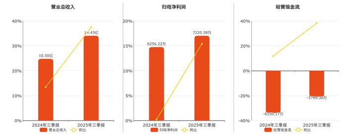 公司营业总收入为14.43亿元,在已披露的同业公司中排名第72。归母净利润为7220.38万元,在已披露的同业公司中排名第70。经营活动现金净流入为-3799.30万元,在已披露的同业公司中排名第95。