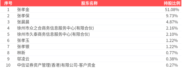 公司股东户数为1.46万户,前十大股东持股数量为1.21亿股,占总股本比例为73.78%,前十大股东持股情况如下: