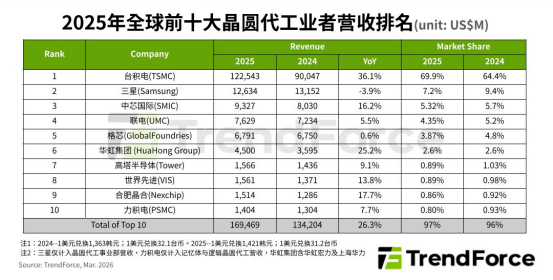 在全球晶圆代工的竞技场上,台积电凭借深厚的技术积淀,稳稳占据着头把交椅;三星与中芯国际则紧随其后,分列第二、第三位,形成了“一超多强”的竞争格局。2025年台积电的市场份额更是上升到了70%,这一数据映射出全球芯片制造资源的高度集中。