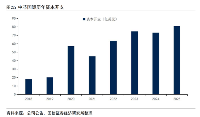 不仅产线超负荷运转,国内厂商更是拿出真金白银来扩大产能。近年来中芯国际资本开支保持高位,2025年实际支出达到高达81亿美元,2026年资本开支亦将对标去年水平,确保持续扩产动力。
