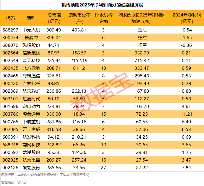 根据3家及以上机构一致预测,在去年同期盈利基础上,信质集团、普天科技、北方导航、海格通信等8股2025年全年净利润有望翻倍增长,同比增幅依次为932.79%、715.32%、333.47%、295.48%。此外,中无人机、景嘉微、纵横股份预计实现扭亏为盈。