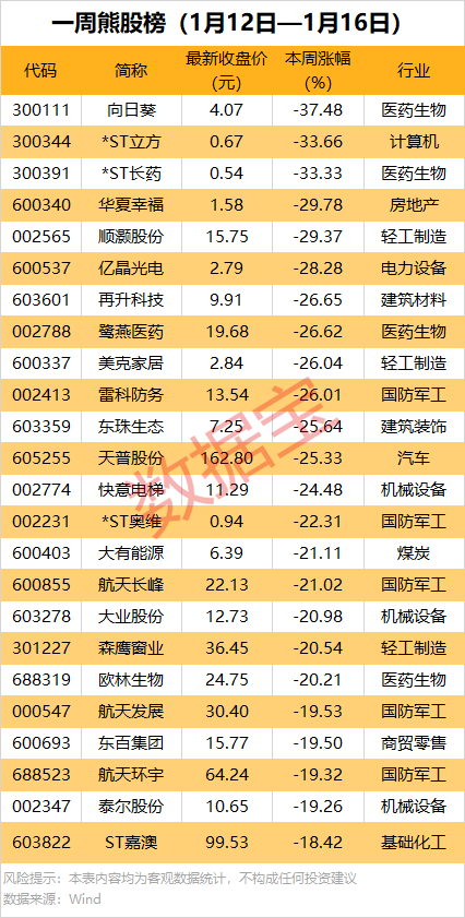 一周牛熊股出炉:领涨股累计涨幅超61%