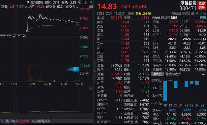 此外,恒光股份、致远新能、海默科技、龙蟠科技等股2025年预计大幅减亏,净利润分别为亏损1500万元、亏损3250万元、亏损5625万元、亏损1.64亿元。