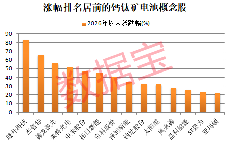据证券时报·数据宝统计,截至3月30日收盘,钙钛矿电池概念股今年以来平均上涨13.4%,大幅跑赢同期上证指数。琏升科技、杰普特、德龙激光、莱特光电、中来股份累计涨幅排在前五位。