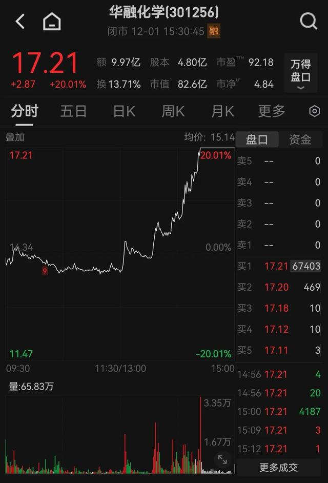 市场热点方面,光刻机概念午后走强,板块指数13:30之后放量快速拉升涨近2%,几乎以全天最高点收盘。华融化学午间收盘时还跌逾3%,午后开盘连续放量拉升,最终以20%涨停报收,股价创历史新高(复权),兴业股份、国风新材等多股午后也直线涨停。