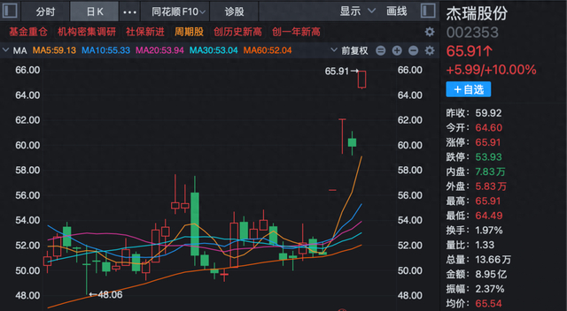 12月3日,杰瑞股份(002353)开盘快速涨停,实现四天内的第三个涨停板。