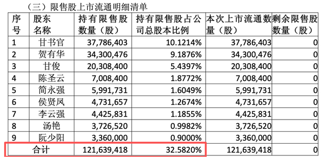 近日,江瀚新材(603281)发布公告,公司首次公开发行限售股份于2月2日起上市流通。本次解除限售的股份数量约为1.22亿股,占公司总股本的32.58%,共涉及9名股东。
