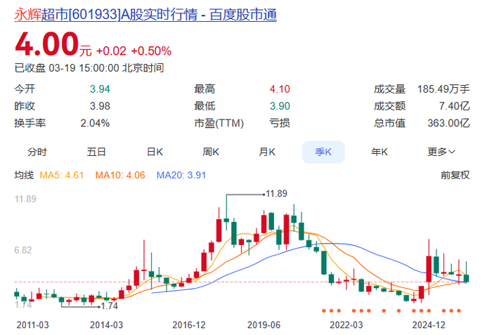 永辉超市股价较巅峰期已跌去66%,市值蒸发掉了700多亿元。