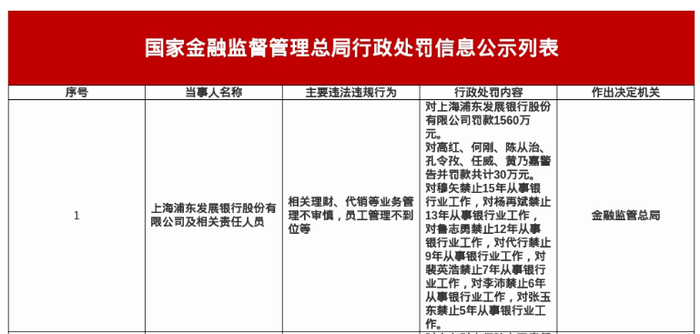 蓝鲸新闻12月19日讯,近日,国家金融监督管理总局发布罚单,剑指上海浦东发展银行股份有限公司及相关责任人员。