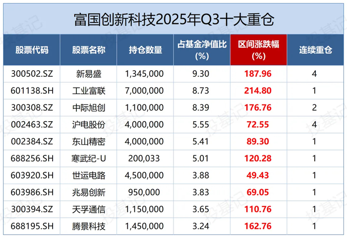 持仓聚焦AI算力、半导体、新能源电子等高景气赛道,有鲜明的产业趋势驱动特征。