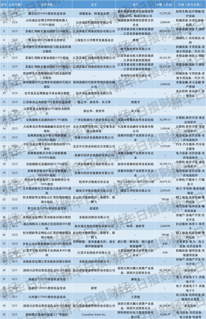 新华日报财经讯 本周并购亮点速览(2025年12月1日—12月7日):