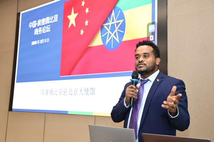 (副会长 郭海涛)埃塞俄比亚驻华大使馆商务参赞Mesfin Jenbrie通过详实数据展示了该国的投资潜力:人口1.3亿、非洲第三大经济体、FDI流入量持续增长。他重点推荐了农业、制造业、新能源、ICT、旅游业等战略领域,并透露今年3月将举办大型商业论坛,为中国企业提供直接投资对接窗口。