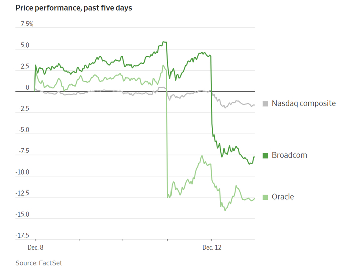 在博通的消息之前,甲骨文已经让市场感到不安。这家数据库软件巨头此前公布的财报显示,其收入未达到分析师预期,而资本支出却超出预期。