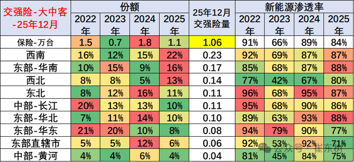 新能源大中客市场渗透率较高的主要是南方地区,其它地区看政策补贴,今年的西北的公交电动化份额提升较大。