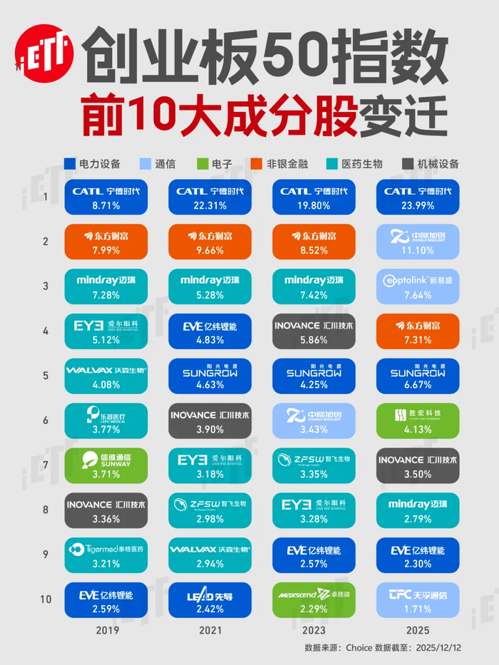 翻开创业板50指数的前十大重仓股名单,你会看到这差不多就是一部中国产业变迁的活历史。