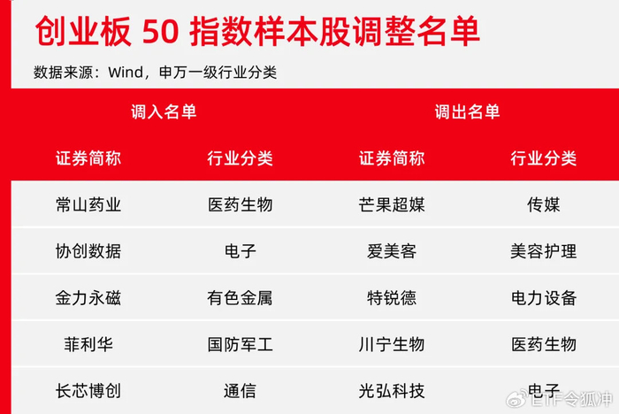 与此同时,对于指数投资者来说,这两周还要关注各大指数的定期调整。像今年表现突出的创业板50指数在周一迎来了新一轮成分股定期调整。