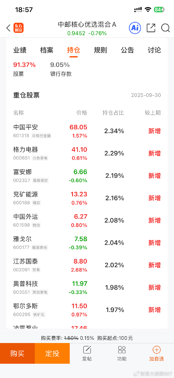基民朋友怎么看中邮核心优选(590001)的持仓呢?持有体验如何?你们觉得基金经理陈梁和王高的业绩还可以吗?