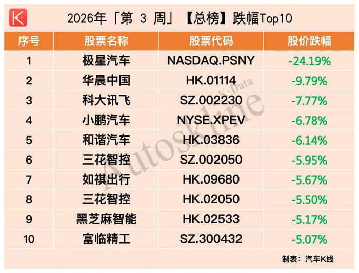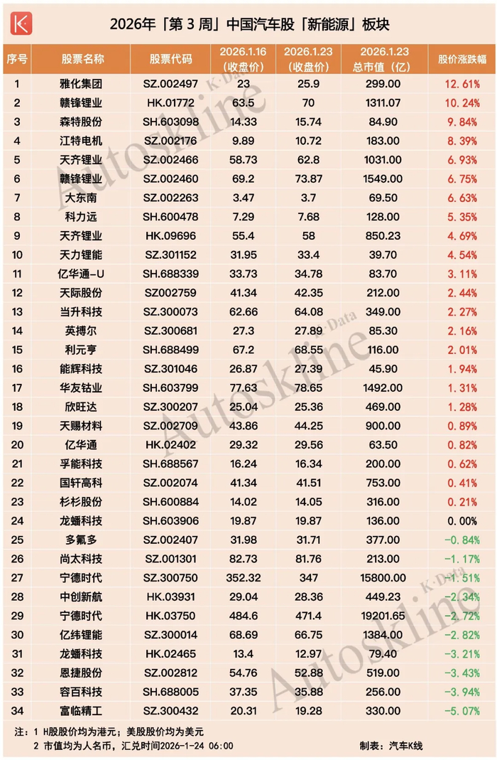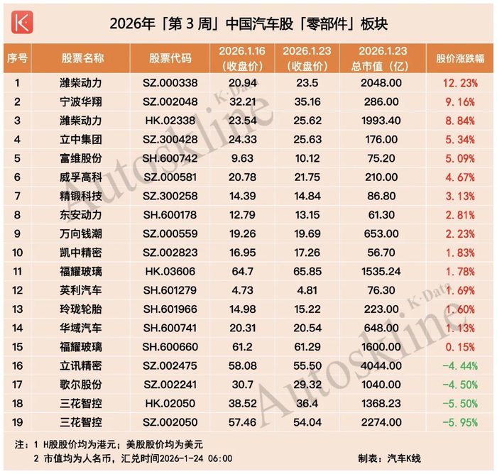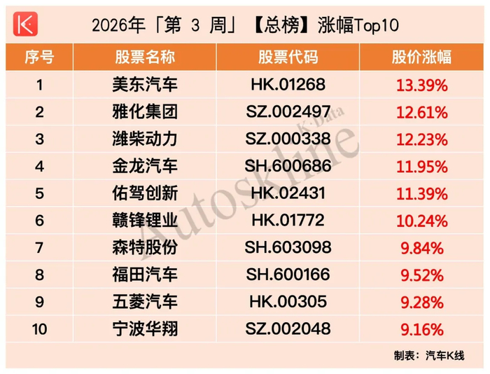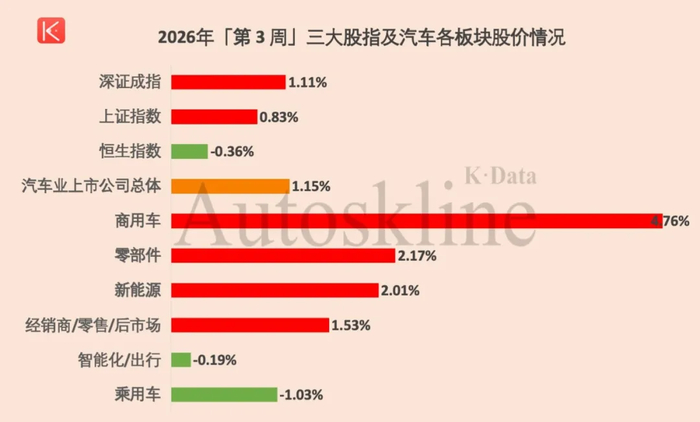 2026年第3周,中国汽车业上市公司的股价表现,将“结构性行情”演绎到了新高度。