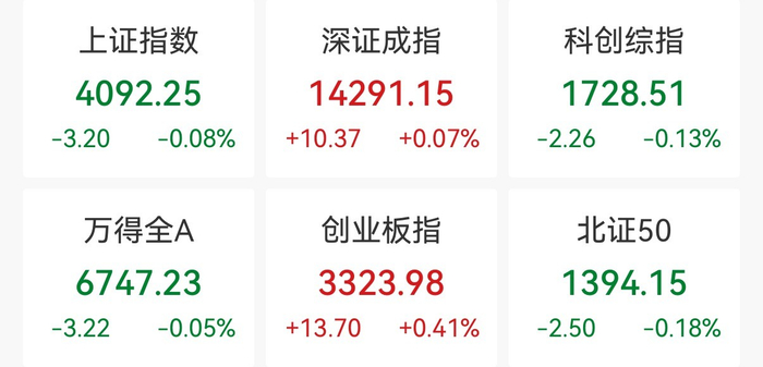 中新经纬3月16日电 16日早盘,A股三大指数走势分化。上证指数跌0.08%,报4092.25点;深证成指涨0.07%,报14291.15点;创业板指涨0.41%,报3323.98点。