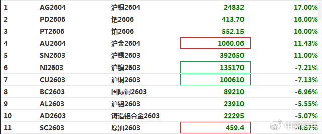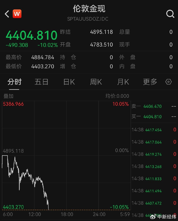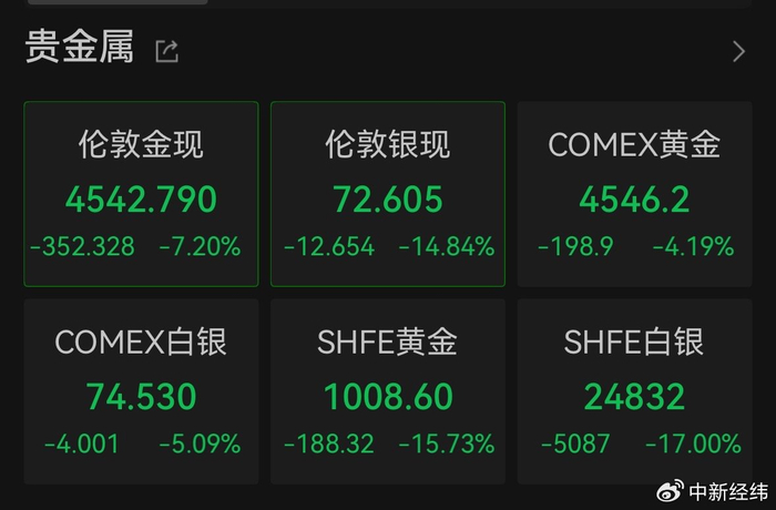 。现货黄金一度跌破4410美元/盎司,日内跌超10%;现货白银跌超15%,几乎抹去年内涨幅;沪金主力合约触及跌停,跌幅为16%。