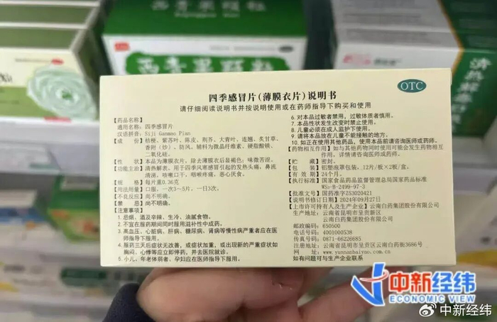 但根据该药品的外包装与云南白药官网公布的药品说明书,四季感冒片的【禁忌】与【不良反应】两栏均为“尚不明确”。