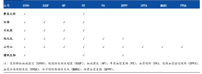 各头部品牌CRRT产品治疗模式比较;资料来源:山外山招股书,国元证券研究所