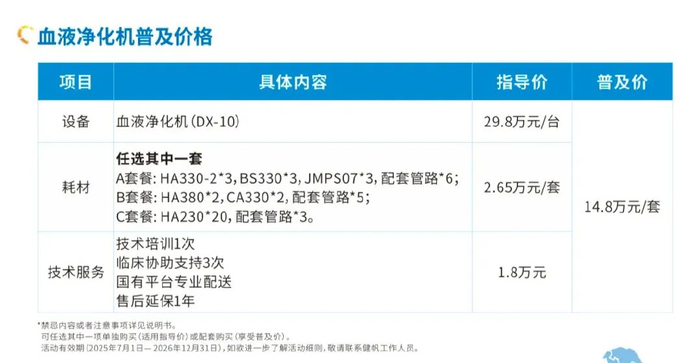 若不计入耗材服务费,其单台CRRT设备的价格已降至约10万元。