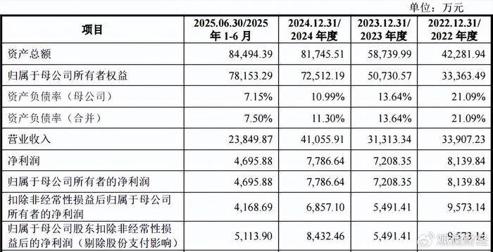 业绩方面,2022年至2024年优迅股份营业收入分别为3.39亿元、3.13亿元、4.11亿元;归母净利润分别为8139.84万元、7208.35万元、7786.64万元。
