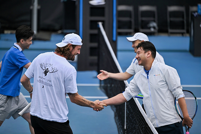 最令人振奋的是,深受中国球迷喜爱的网坛传奇——2005年澳网男单冠军马拉特·萨芬也惊喜现身,他不仅和业余挑战赛选手们分享了自己对网球运动的理解,更表达了对国窖1573澳网业余挑战赛的欣赏:这一赛事平台让网球的影响力跨越国界,超越职业与业余的限制,正如网球运动本身也不止于竞技,更是乐趣所在。随后萨芬与唐栋良互赠礼品,双方互赠的签名网球与国窖1573澳网纪念版产品也成为中澳体育文化交流的珍贵见证。