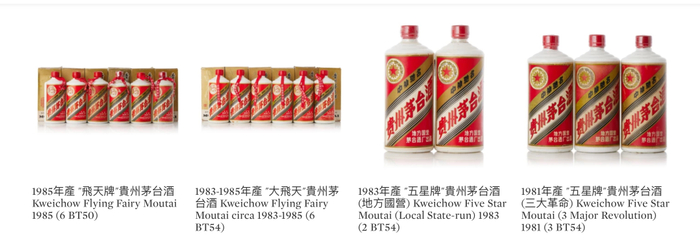 1981年产“五星牌”贵州茅台(三大革命)、1983年产“五星牌”贵州茅台(地方国营)、1983-1985年产“大飞天”、1986至1996年“铁盖”茅台等悉数亮相,其中不乏备受藏家关注的“1704”珍品飞天茅台。