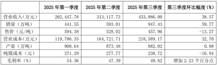 前三季度,业绩承压态势更为明显。据报告内容,山煤国际累计实现营业收入153.32亿元,同比减少30.20%;利润总额25.72亿元,同比下降39.77%;归母净利润10.46亿元,同比降幅49.74%,扣非归母净利润10.88亿元,同比下降50.23%,加权平均净资产收益率6.35%,较上年同期减少6.54个百分点。