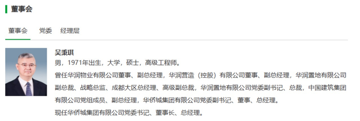 2022年吴秉琪升任华润置地总裁,成为华润置地的核心管理人员,全面负责公司日常经营管理。