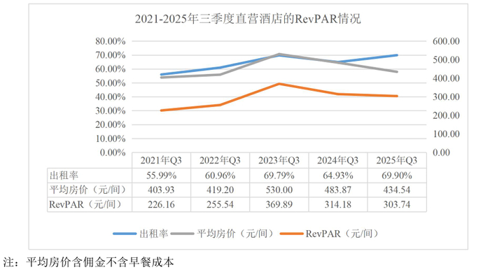 2020年,其酒店运营收入中高达94.2% 来自直营。即便在2021-2024年间,这个比例也始终牢牢卡在75%–89% 的高位。