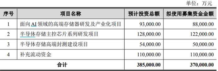 江波龙12月的公告显示,公司拟定增募资不超过37亿元用于面向AI领域的高端存储器研发及产业化项目、半导体存储主控芯片系列研发项目、半导体存储高端封测建设项目及补充流动资金。